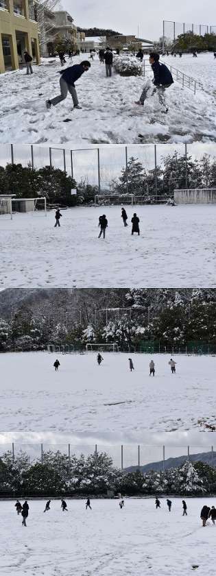 多くの生徒が外に出て「雪合戦」や「雪だるま」をして楽しみました。