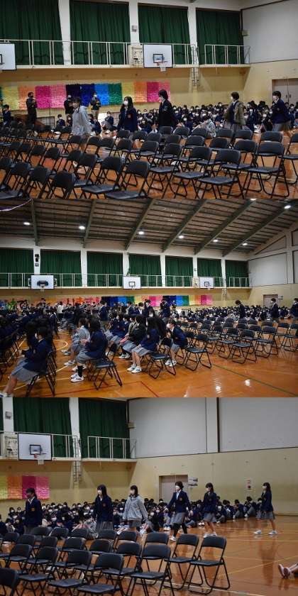 約3年ぶりとなる全校生徒による「校歌」斉唱です。