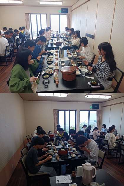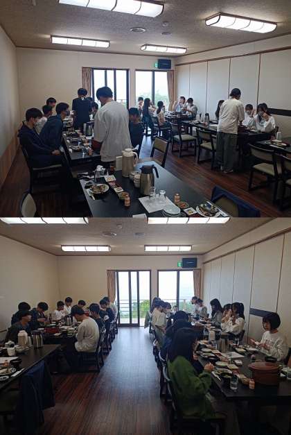千賀荘での4組の朝食風景です。みんな元気よく食べています!