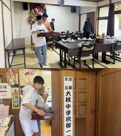 3-5近海荘、朝食の様子です。配膳を手伝う姿が素敵でした。