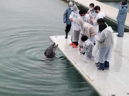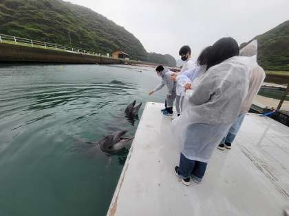 イルカパークでのエサやり体験です。