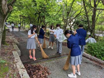 15日(木)6限に3年生が正門前の落ち葉掃除をしました!