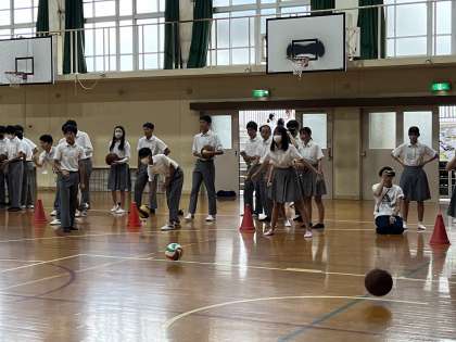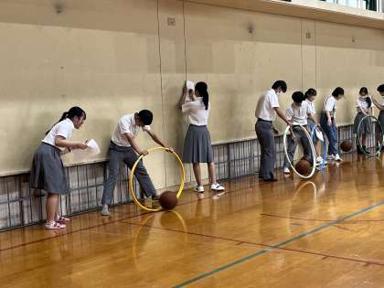 体育委員会主催の「君の心にストライクボーリング」が昼休みに行われました。フラフープの中にボールを転がして入れるという新しい企画で、クラスや学年で盛り上がるイベントとなりました。本日は3年生で実施し、決勝進出は3組と5組でした。明日は2年生です。