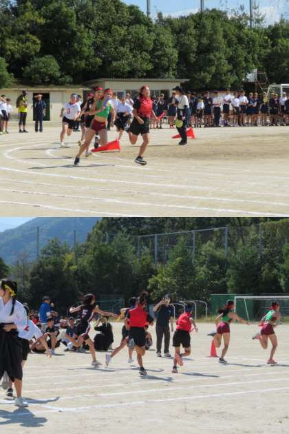 午後の部も順調にスタートしました。クラブ対抗リレーの様子です。初めの2枚が女子部、あとの4枚が男子部のリレーです。