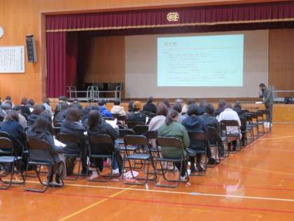 少し早いような気もしますが、あと2カ月に迫った来年度の3年生(現2年生)向けの修学旅行について、体育館で保護者を対象に説明しました。
