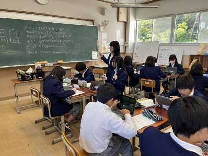 1年生の総合的な学習の時間に、「大枝地域の魅力再発見!」というプロジェクトに取り組んでいます。疑問点を探し、仮設を立てて探究を進めていきます。自分たちで協力しながら検証していきましょう。