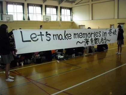 修学旅行委員会お手製のスローガン「Let's make memories in 壱岐」の