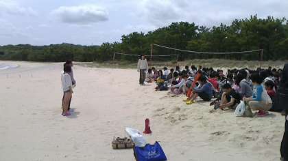 砂浜でのビーチフラッグ大会のルール説明です。
