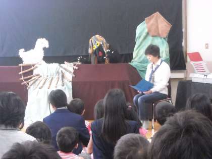 来ていただいて、中学生も園児と一緒に人形劇を楽しみました。