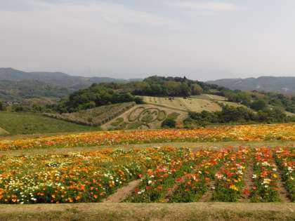 あわじ花さじきに到着です。クラス写真の様子です。お天気も良くなってきました。