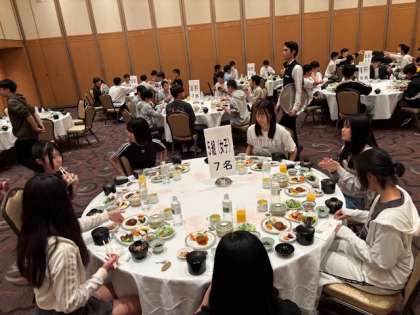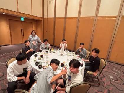 夜ご飯の様子です。体力を使うラフティングの後の美味しいご飯。疲れが癒やされます。