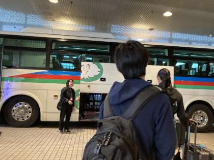 朝食を食べ終え、今から出発です!防災学習を行う会場に向かいます。