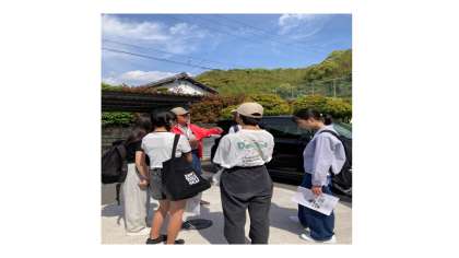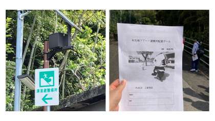 2組・3組は防災学習 三里地区ツアー中です!高知市立三里小学校を歩いています。