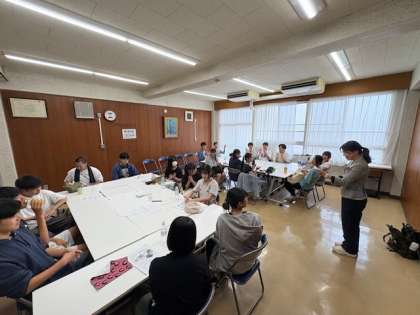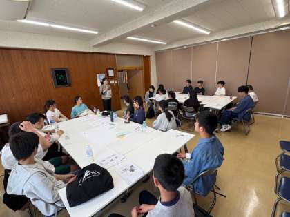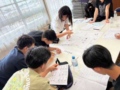 水分をしっかり取りながら、みんなで避難所の設置計画を作成中!