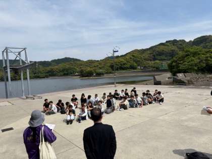今からドラゴンカヌーの体験が始まります!漕ぎ方のレクチャーと安全に関することの説明をしてもらっています。