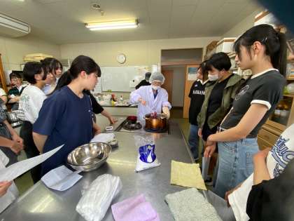 ジャム作り開始です。大粒のブルーベリーを銅鍋で砂糖と煮ていきます。