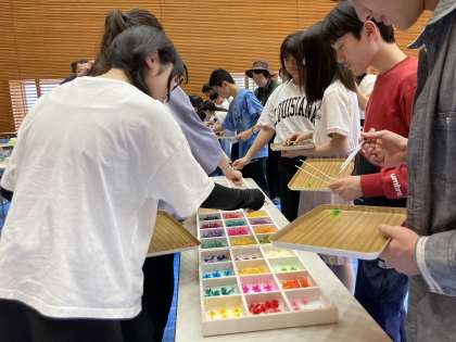 ハーバリウム作りの作業が始まりました!入れる花やパワーストーンなどを選んでいます。