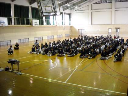 生徒たちは熱心に耳を傾けて、映像を見ていました。