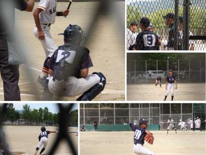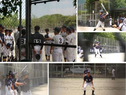 野球部は梅津中学校と合同で参加です。なかなか点数が取れない状況から一気に大量点。追加点を取り、みごと勝利です。