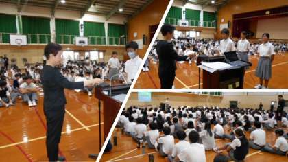 1学期の終業式が行われました。暑い中でしたが、校長先生のお話や生徒指導の先生のお話をしっかり聞くことができました。有意義な夏休みを過ごしてください。