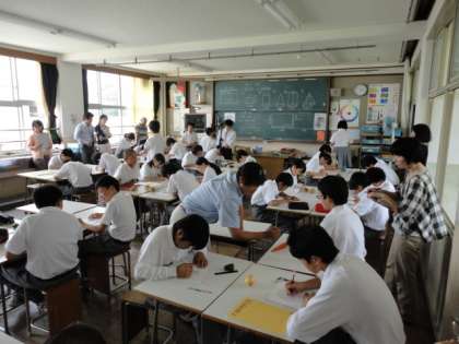 6月17日(月)第6時限に第2回目の校内公開授業・研修会を行いました。今回は、1年生の「数学」と「美術」の授業を教科ごとに担当グループを分けて細かく参観して、その後、研究協議会を行いました。