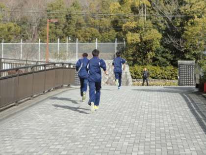 武道では、この一番寒い時期に「寒稽古」が行われたりしますが、学校体育ではこの時期に長距離走(持久走)に取り組んでいます。学年ごとに学校周回コースを設定して、校内外の起伏にある周回コースで、各自が自己記録を目標に頑張っています。