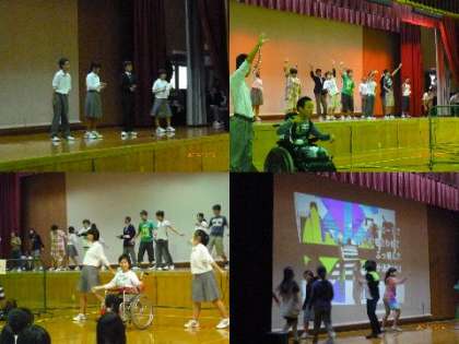 そして今年も、西総合支援中等部の生徒会の皆さん9名参加してもらい、大枝中学校の生徒会とともに、EXILEのライジングサンの曲をバックに踊ってくれました。