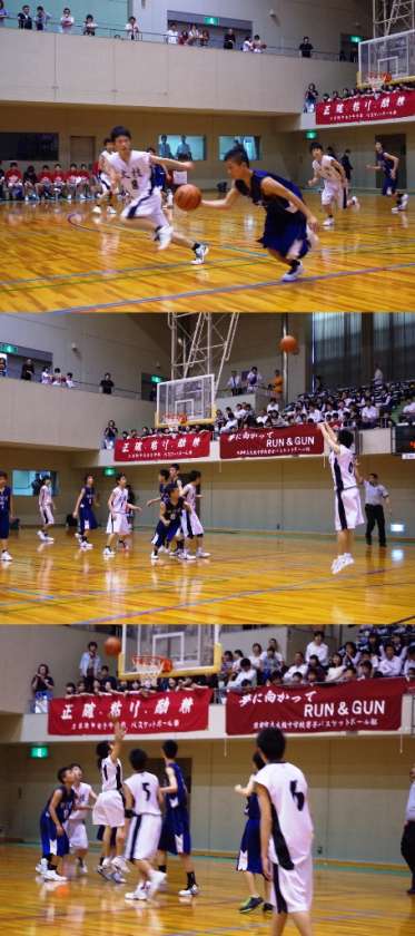 本校男子バスケットボール部は西賀茂中学校と対戦し、前半が終わって43−22のリードで折り返し、最終は85−42で快勝しました。危なげないゲーム運びで、観戦していても安心して見ていることが出来ました。(よ)
