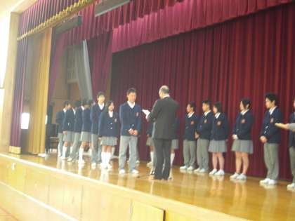 このあと、平成22年度の前期の学級役員の認証式が行われ、3年2組