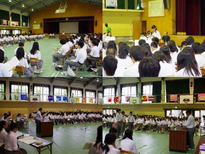 その後、学校祭での「OFC」企画についての提案があり、さらに各クラスが趣向を凝らしての「学級発表」と続きました。なかなか見応えがありました。特に、1組さんが提案した「私たちが学校に対してできること、チャレンジ」にはぐっときました。