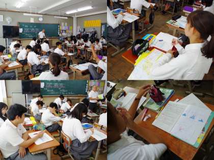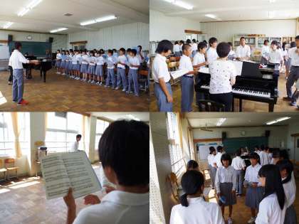 6組は音楽(写真下)。伊吹先生が合唱コンクールに向けて全体指導とパート練習をされていました。元気な男の子が数名いて、リーダーが一生懸命まとめていました。集団で一つのことをやるのはなかなか大変ですが、それだけに充実感もあります。頑張れ!