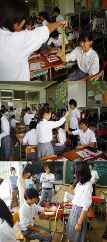 生徒諸君、多くの先生方が参観されて緊張しましたか?とても楽しそうに実験をしている様子を見ていて、なんだかうれしくなりました。でも、ただグループ活動をしただけではない、「学びあい」と「支え合い」をこれからも大切にして下さいね。(よ)