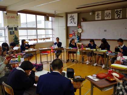 昨日のクリーンディでの協力に、私から御礼を伝えに生徒会室を訪ねると、皆さんで昼食を共にしながら中央委員会を開いていました。こうした地道な活動を積み重ねながら、生徒会を支えてもらっています。本当に感謝です。(よ)