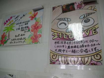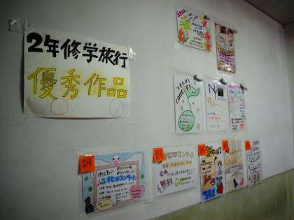 今回、伊江島にて掲示していただくポスターの優秀作品が選ばれました。南C棟1階に掲示されています。もしご来校なさいましたら是非ご覧下さい(よ)