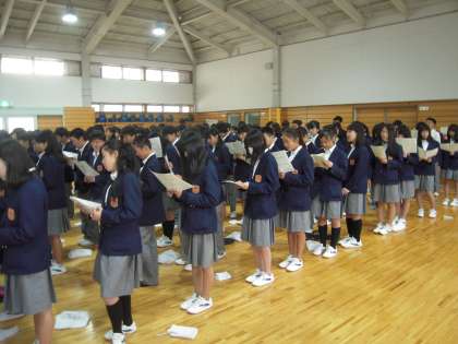『2年生 学年集会で合唱練習』