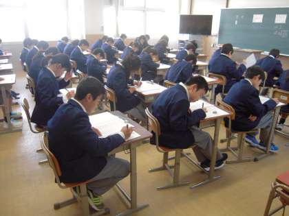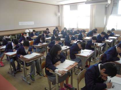 1年生では、「ジョイントプログラムテスト」が行われました。1限:国語、2限:数学(算数)のテストを受けました。1−4と1−5の様子です。みんな真剣に向き合っています。