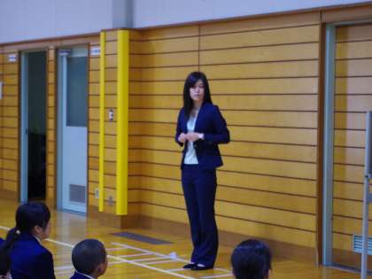 本日から新たに 饒平名 夢子(のひな ゆめこ)先生を本校にお迎えしました。2年生の国語の授業を3クラス受け持っていただきます。したがって、2年2,3組は河上先生に、4,5,6組を饒平名先生にご担任いただきます。