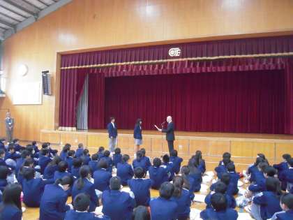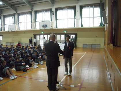 と生徒会を中心に全校で取り組んだ「ペットボトルキャップエコ運動」感謝状(全校で 15kg回収)が表彰されました。