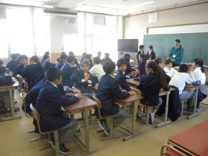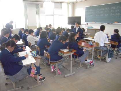 1−4(右)では、班で意見を交換し、話し合い活動に取り組んでいました。1年生の学級委員も会を重ねるごとに自信をつけてきています!!