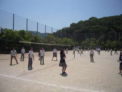 今日は非常に暑い日となり気温もどんどん上がっていますが、6月1日に行われる予定になっている「球技大会」に向けて、練習をするクラスや生徒の姿がグランドに多く見られました。先生も入って一緒にバレーボールをするグループもありました!!