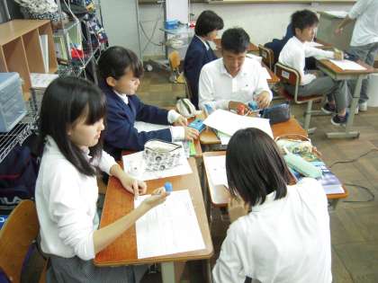 3−5「理科」(左)・3−6「美術」(中)・3−7「技術」(右)の学習の様子です。