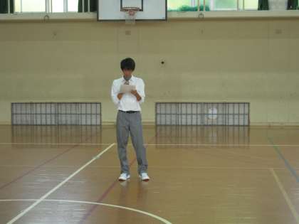 体育館の4グループの司会進行役を務めてくれた3年生のNくんです。全体の流れを見通した立派な活躍ぶりでした。大役、ご苦労様でした。