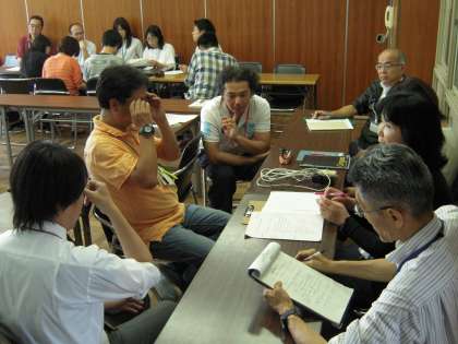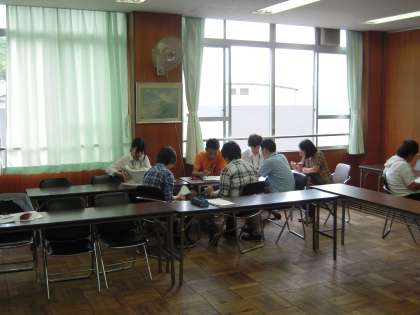 授業が終わった後、教員全員で研修会を行いました。