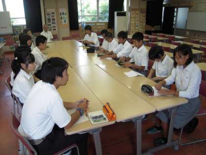 まずはじめに「自己紹介」を行います。まだまだ緊張していますが自分たちのことを知ってもらおうと真剣に伝えています。高校生からも自己紹介をしていただき、いよいよ交流研修突入です。