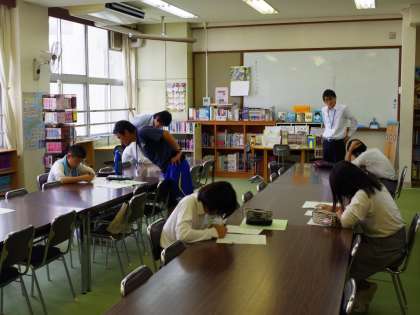 当初の予定よりスタートが少々遅れましたが、今年度は全学年で実施します。ただし、今日は1年生はファイナンスパーク学習、2年生チャレンジ学習のため、3年生のみの参加となりましたが、原則週に2回、図書室と多目的室を使って行う予定です。