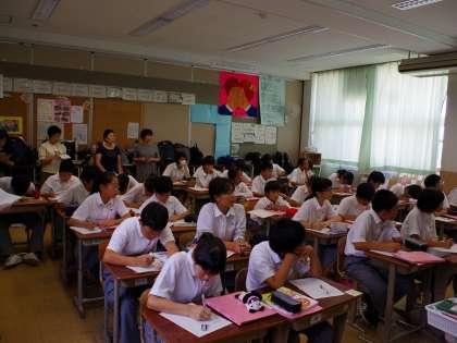 本日、1年生諸君は家庭科のゲストティチャーとして武村葉子様(本校学校運営協議会理事)をお招きし、「藍染め学習」をおこないました。