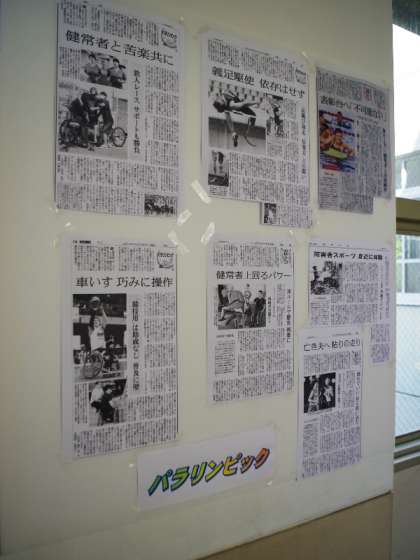 私も、先の全校集会で「リオ・パラリンピック」に関する話題を提供しましたので、その後のフォローとして、校長室前の廊下にパラリンピック関係のニュースを掲示しています。これは私自身の勉強にもなり、楽しく続けられています。