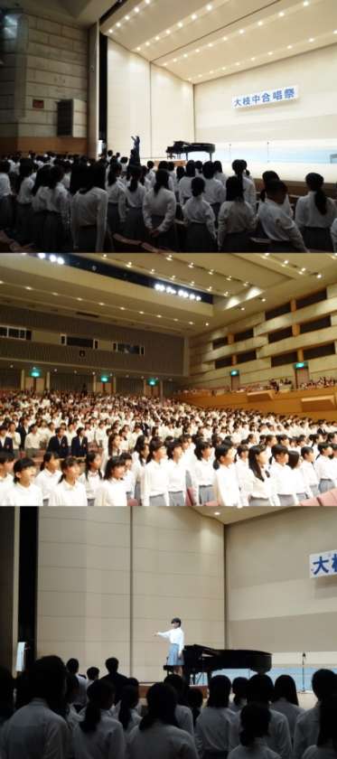 昨日、長岡京市文化会館において、本年度の学校祭「大枝祭」の第1日目「合唱祭」を行いました。以下は合唱コンクール・1年生の様子です