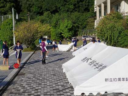 早朝より、多くの生徒諸君が準備に取りかかってくれています。台風一過、今日は晴天に恵まれ、すばらしい体育祭日和です。