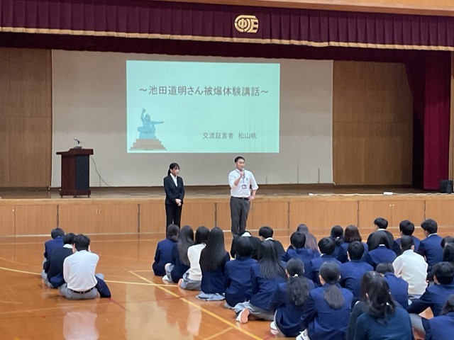 今回は、長崎から交流証言者として大学生の松山さんをお迎えし、被爆体験について講話をしていただきました。